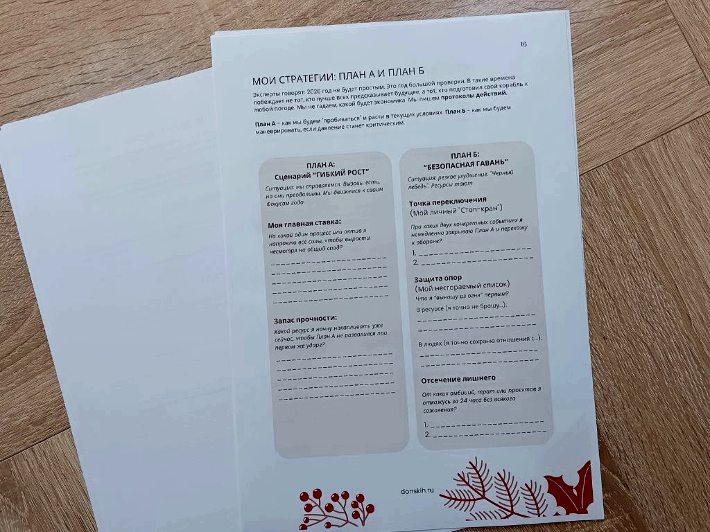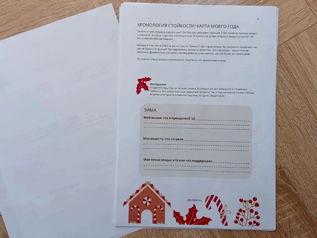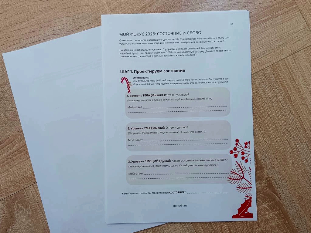 Заполните форму обратной связи ниже и скачайте тетрадь. Распечатайте ее. Найдите пару часов тишины. Пусть 2026 год начнется не с рывка, а с устойчивой точки опоры.